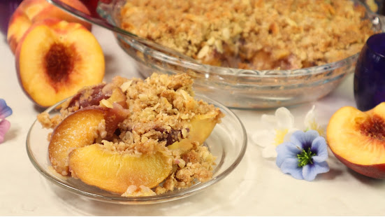 Dzisiaj zapraszam na prosty letni deser: brzoskwinie zapieczone pod przyjemnie chrupiącą migdałowo…