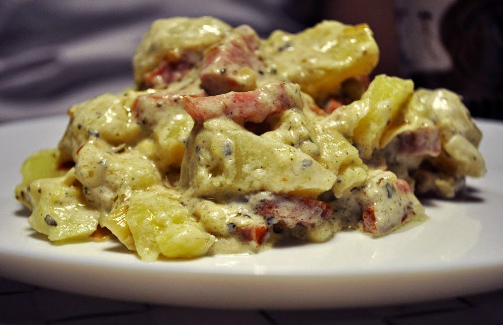 Chciałabym Wam dzisiaj zaproponować pomysł na zapiekankę ziemniaczaną z kiełbasą i cebulką. Danie to ma wiele plusów, przede wszystkim jest tanie, po drugie jest bardzo syte, a po trzecie smakuje wyśmienicie. Jedyną wadą tej zapiekanki jest to, że nie da się jej pokroić na kawałki, za to nakładamy ją łyżką.