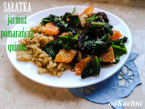 2. Na oliwie podsmażyć posiekaną cebulę i czosnek. Dodać jarmuż i dusić przez kilka minut. Doprawić solą i pieprzem.