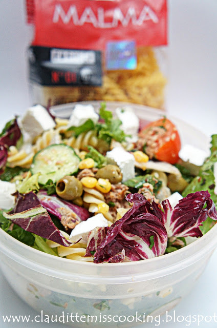 SKŁADNIKI:szklanka makaronu MALMA świderki (nie ugotowany)200 g mix sałat3 pomidory1/2 puszki kukurydzy2…