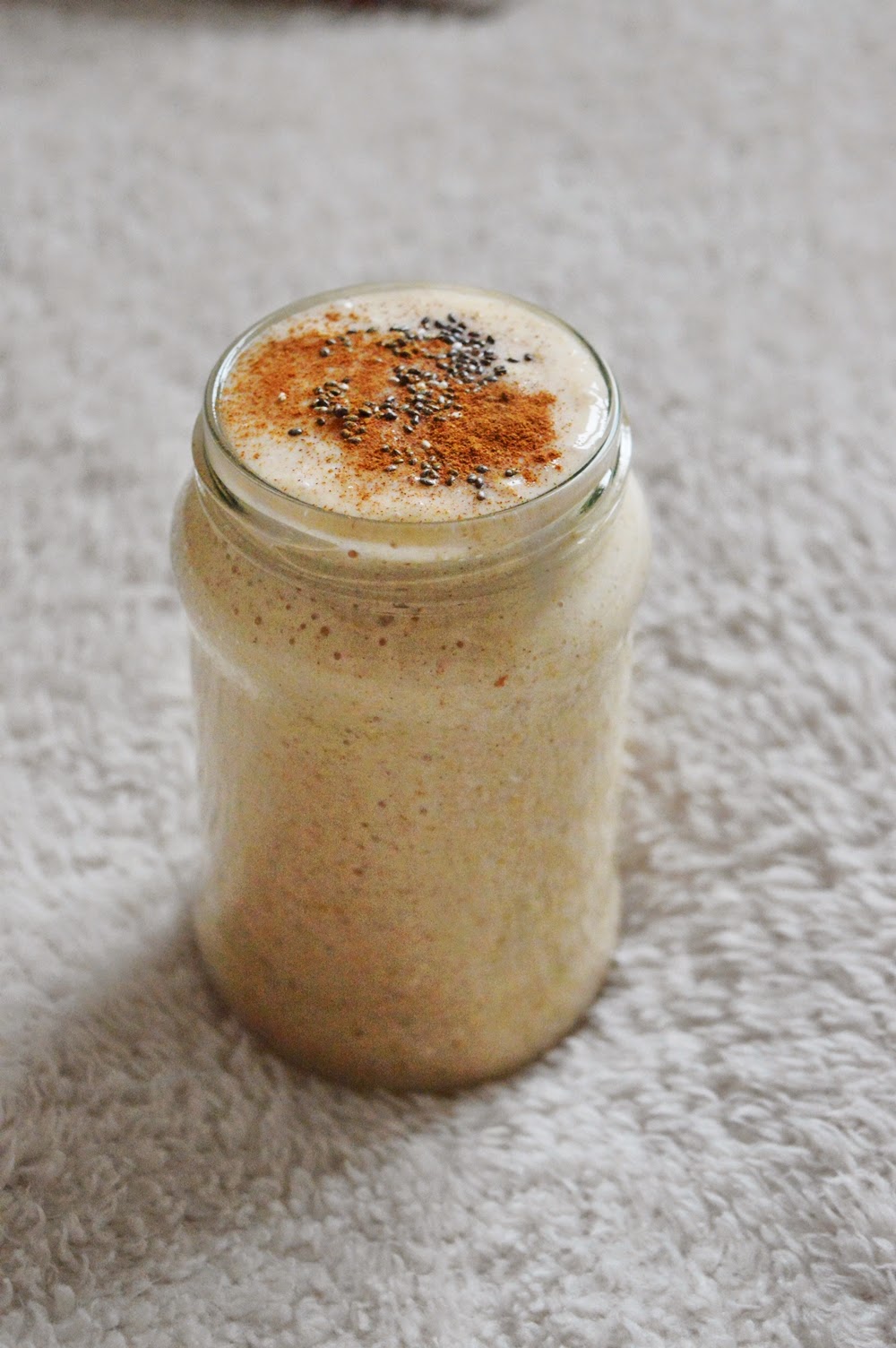 zimowe smoothie: kaki, banan, płatki owsiane, jogurt grecki, maślanka, cynamon, gałka muszkatołowa,…