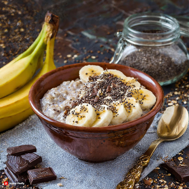 Owsianka z bananem, masą makową i czekoladą / Oatmeal with banana, poppy seed mass and chocolate