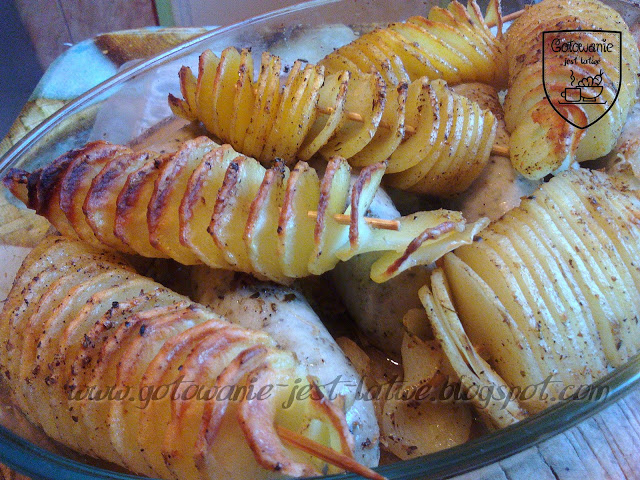 kilka ziemniaków po 3 na osobę biała kiełbasasólpieprzoliwaoreganoczosnekZiemniaki obieramy i kroimy przyrządem…