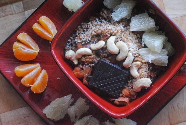 564. Karobowa owsianka marchewkowa z nerkowcami, wiórkami i gorzką czekoladą
