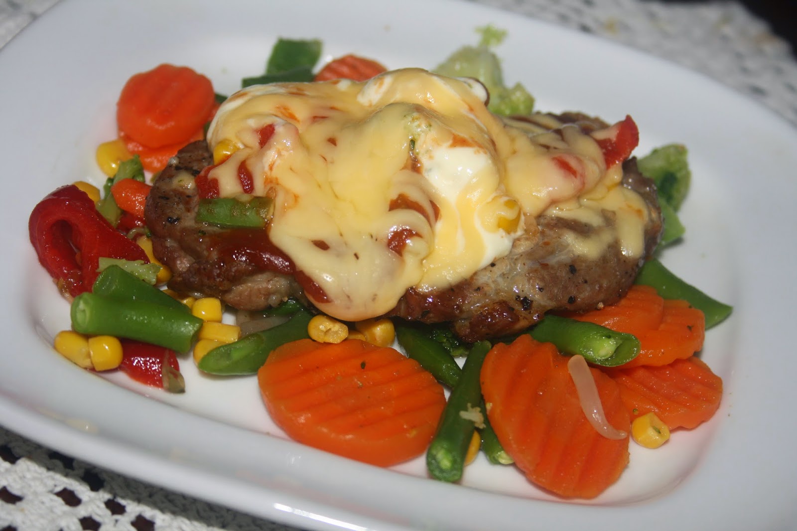Jej przygotowanie zajmuje kilka chwil,a efekt przechodzi oczekiwania. Dodatek warzyw i sera bardzo fajnie wzbogaca smak karkówki. Idealne danie na niedzielny obiad