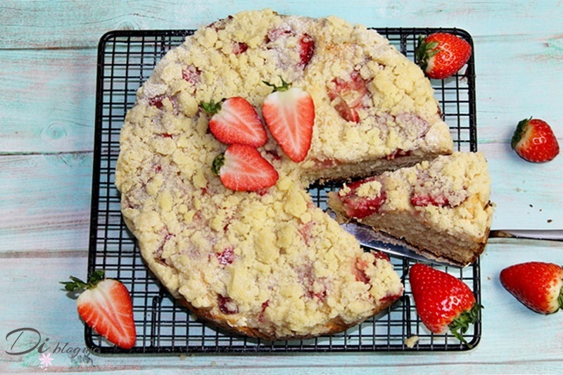 Drożdżówka bez wyrabiania z truskawkami i kruszonką, czyli ciasto drożdżowe dla leniwych…