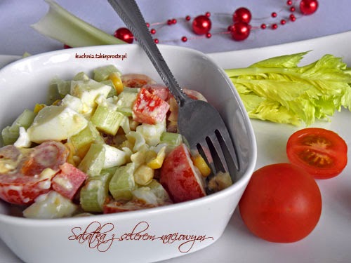 Miała być sałatka z brokułem, a wyszła sałatka z selerem naciowym i jajkami, bo zapomniałam kupić brokuła, a przypadkiem kupiłam seler.
