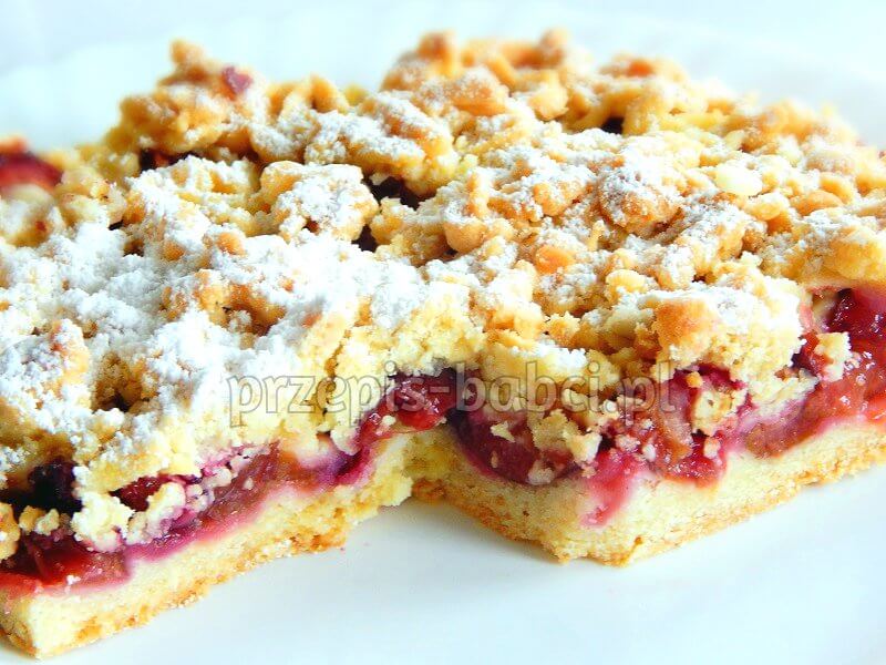 Pyszny sernik na ciemnym cieście z malinami i galaretką. Składniki blaszka 25/35:…