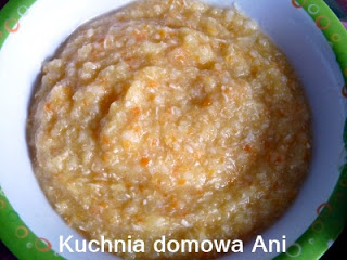 Składniki: 40 g mięsa z indyka (ewentualnie z kurczaka)1 marchewka1 nieduże jabłko2-3…