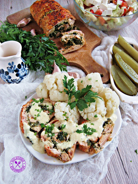 Przepyszny sposób na kurczaka, mięso jest niesamowicie miękkie i soczyste.Po rozkrojeniu roladki wypływa rozpuszczone, aromatyczne masełko – palce lizać!