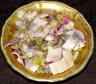 śledziki matiasy z oliwkami,pieczarkami,czerwoną cebulą…