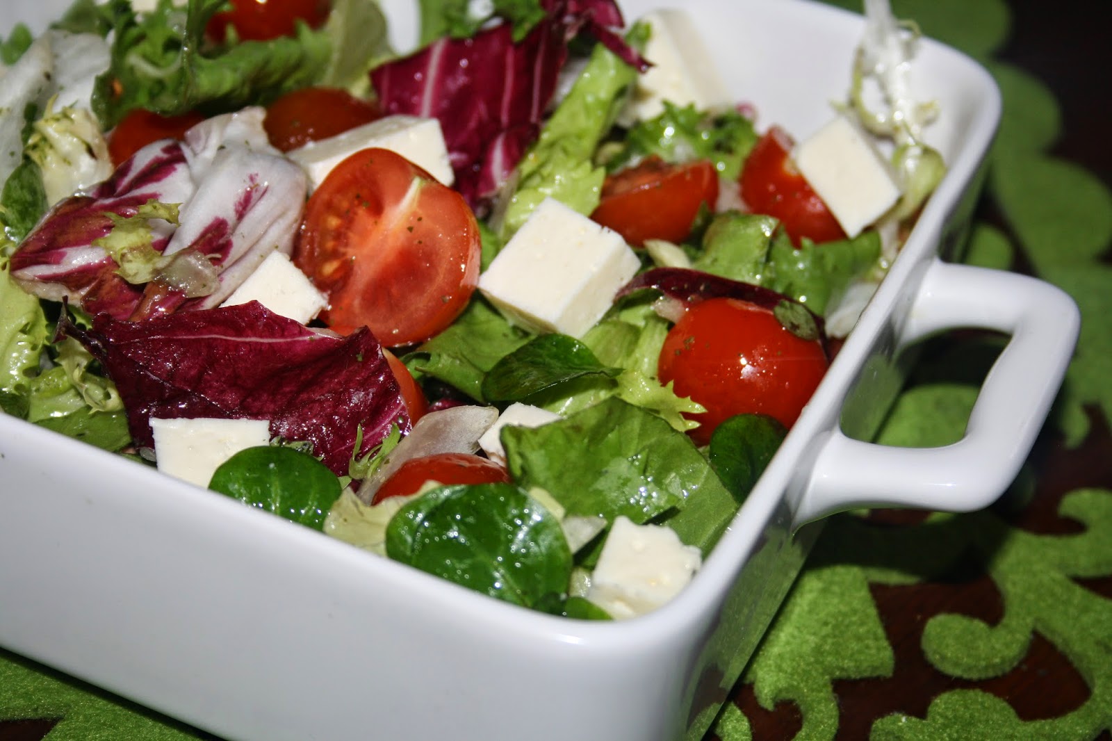 Jak na pewno wszyscy czytelnicy mojego bloga sałatki i surówki uwielbiam,stąd też często o nich wpisy. Dal mnie taka porcja zastępuje np kolację a czasem nawet i obiad, samo zdrowie. Ta powstała z wykorzystaniem sera korycińskiego swojskiego pani Czesławy Zarzeckiej.