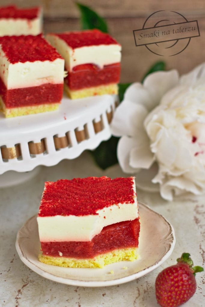 Biszkopt, masa truskawkowa oraz pianka cytrynowa, to dzisiejsza propozycja na ciasto z…