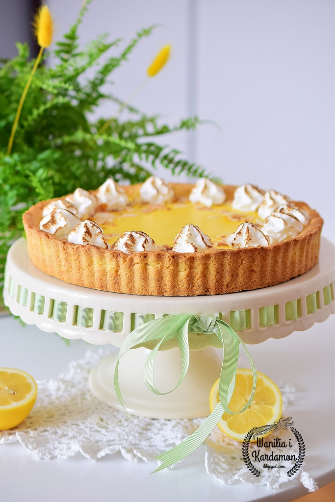 Tarta cytrusowa z prażonymi płatkami migdałowymi i opalaną bezą