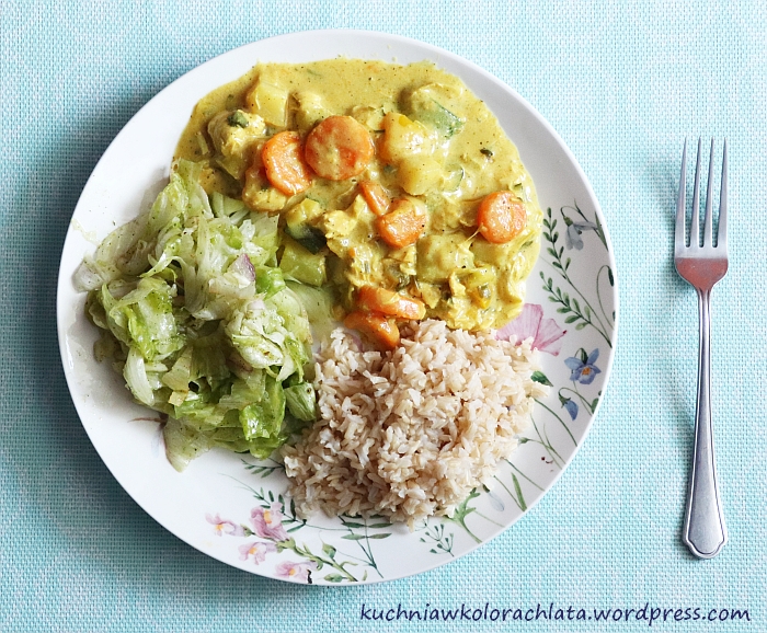 Kurczak w potrawce curry z młodych warzyw