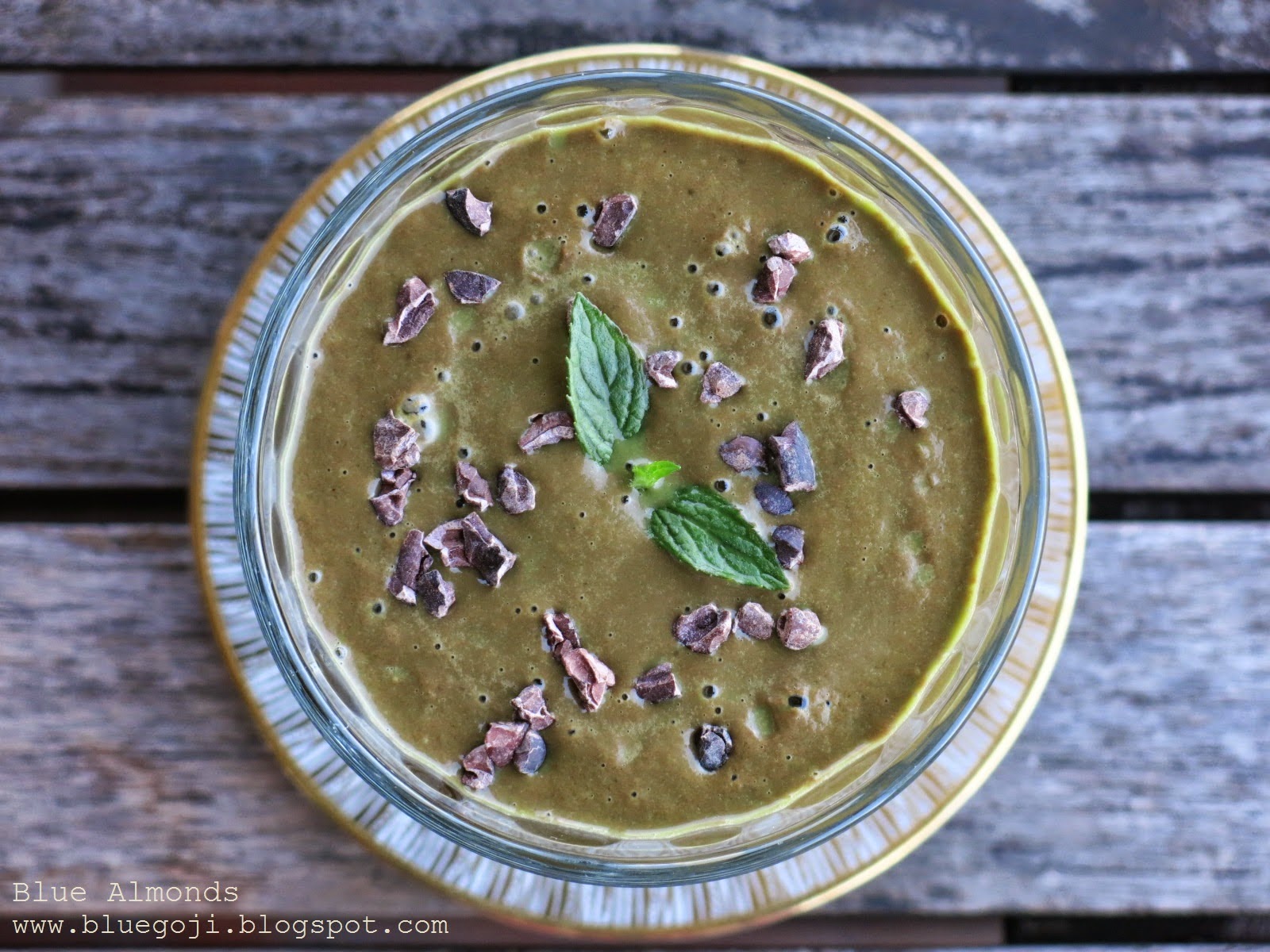 kakao + szpinak + mleko migdałowe + mięta + syrop klonowy + ziarna kakaowca