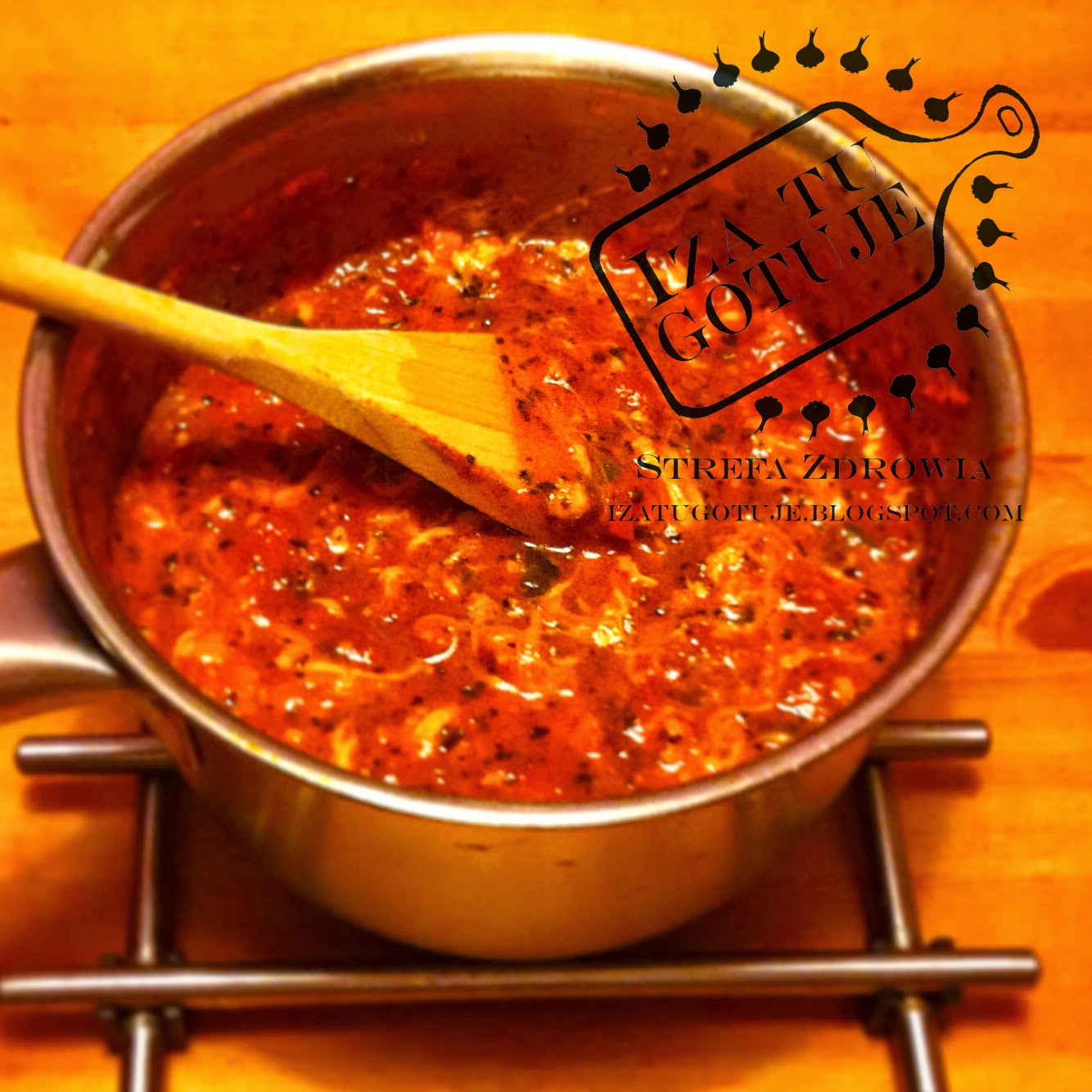 puszka pomidorów krojonych w zalewiegarść szpinaku baby2 ząbki czosnku2 łyżki mleka (kozie, roślinne, to używane w domu)bayzlia, oregano, świeżo zmielony pieprz, sól himalajskałyżka świeżej