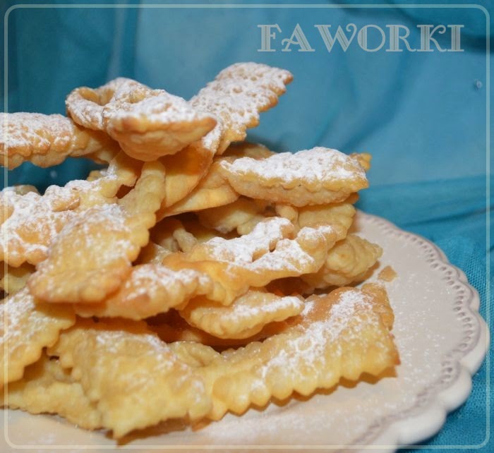 Faworki inaczej zwane chrustem to Nasze karnawałowe dobro. Obok bardzo popularnych pączków jadamy je w Tłusty czwartek. Cukier puder posypany po wierzchu nadaje im słodki smak, bo same w sobie słodkie nie są. Ciasto jest delikatne, kruche i leciutkie.