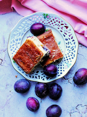 Drożdżowy placek na budyniu ze śliwkami