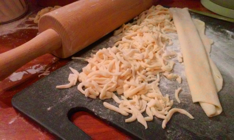 Domowy makaron Drukuj przepis Składniki1 szklanka mąki pszennej1 jajkogorąca woda