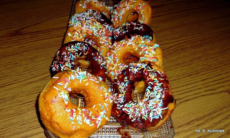 Tak samo ja nie mogłam oprzeć się pokusie i nawarzyłam pączków, tyle że z dziurką, tzw. dougnats (donaty). Są mniej słodkie niż tradycyjne i niezwykle smaczne 🙂
