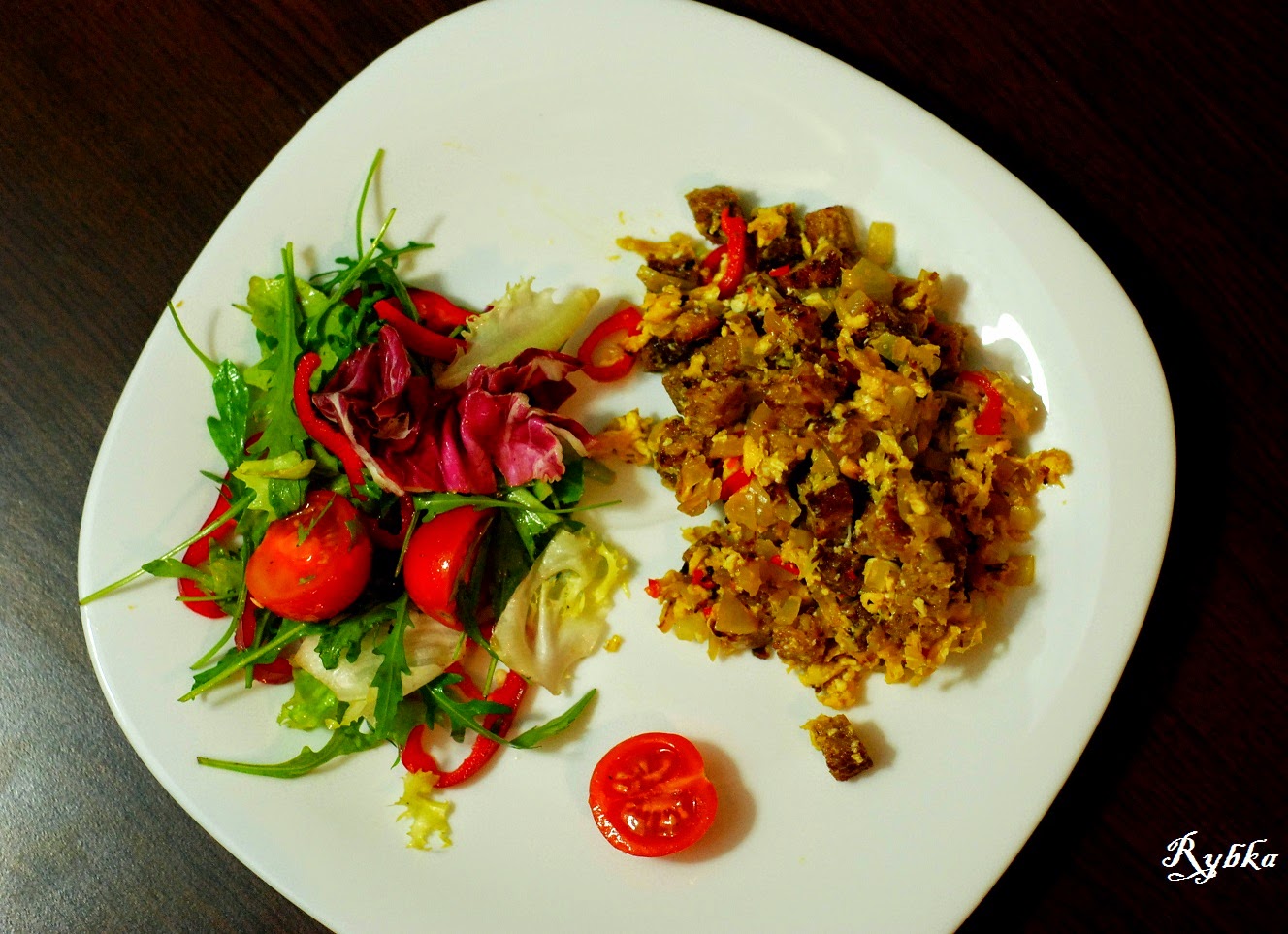 Chociaż u mojego narzeczonego przyjęły miano „śmietnik” -nie bez powodu. To mój sposób na „czyszczenie lodówki” jeszcze za czasów studenckichzwłaszcza jadąc do domu.Świetny sposób na czerstwy chleb- taki najlepiej się sprawdza, kawałek kiełbasy i pół ogórka,Od tego czasu ewaluowało, ale założenie ciągle to samo 🙂