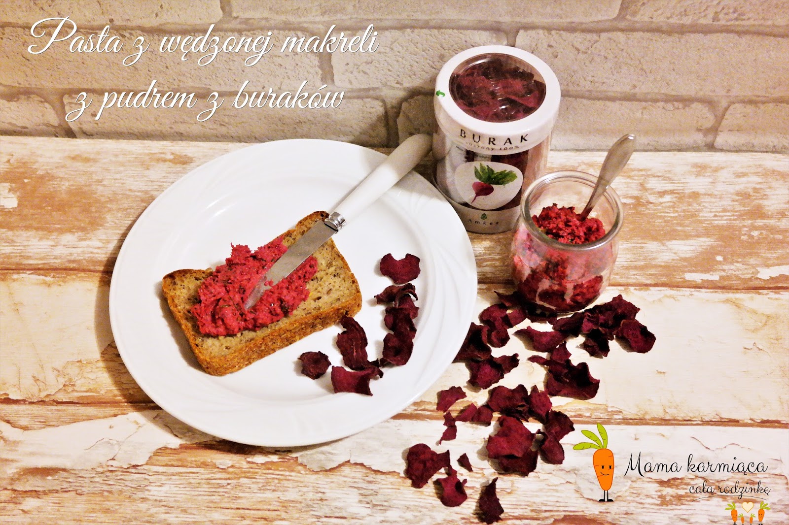 Pasta z wędzonej makreli z pudrem z buraków