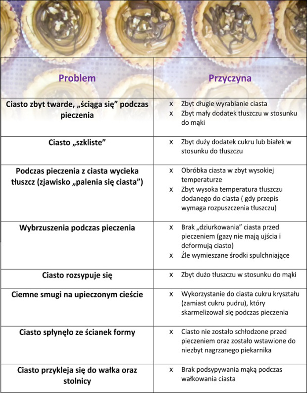Kochani zebrałam najczęstsze problemy, jakie możecie napotkać przy przygotowywaniu kruchego ciasta. Ja jak zaczynałam przygodę z pieczeniem spisywałam sobie takie informacje i wieszałam na lodówce. Zachęcam do wydrukowania tabelki, aby mieć ją zawsze pod ręką (nawet jak zabraknie internetu) 🙂
