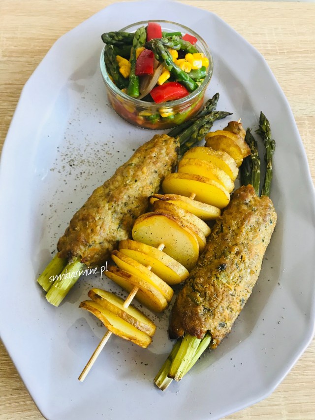 Szparagi pieczone w mięsie mielonym