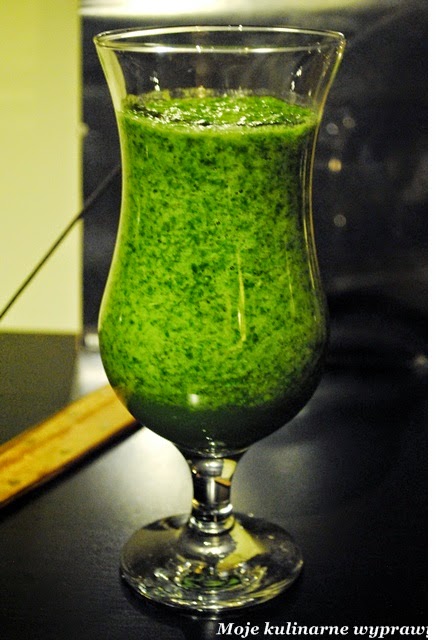 Oczyszcza organizm, dostarcza witamin i minerałów.100g potarganych liści jarmuża wrzucamy do kubka od blendera, dodajemy jednego pokrojonego banana i półtora szklanki świeżego soku jabłkowe zrobionego w sokowirówce(jeśli nie posiadacie, może być kupiony) Całość blendujemy i od razu podajemy 🙂