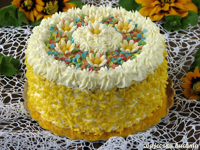 Lekki torcik o delikatnej konsystencji z masą śmietanową i orzeźwiającym musem z…