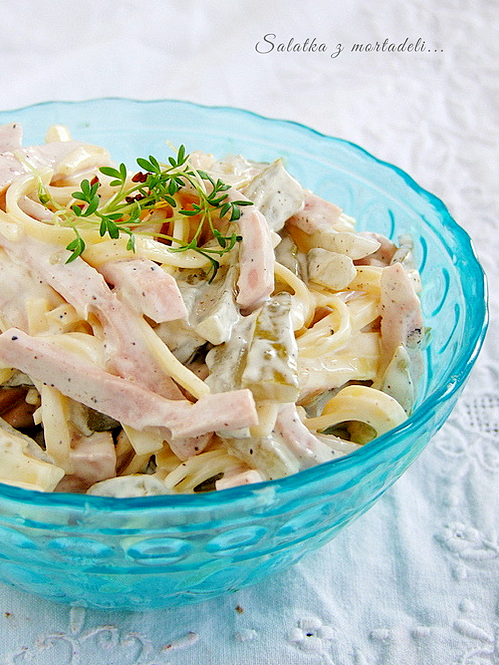 …bardzo smaczna a zarazem prosta, bo zaledwie kilku składnikowa sałatka z mortadeli……