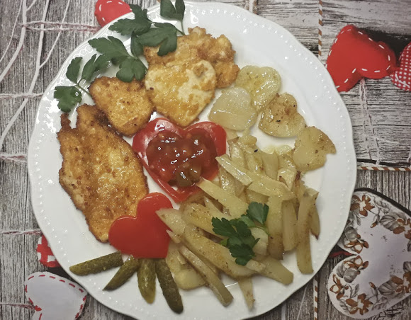 Składniki (dla 3-4 osób): ziemniaki – 10 szt.sznycle z kurczaka – 4…