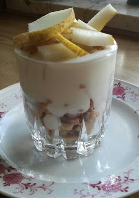 Deser z gruszkami www.kuchniasmakow.blogspot.com Trzy składniki: pokruszone herbatnikijogurt naturalnygruszkiDo szczęścia jeszcze potrzebne…