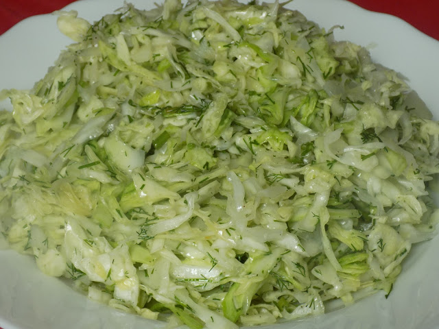 Składniki: 1/2 główki młodej kapusty1/2 pęczka koperku1/2 cebuli2 łyżki oliwy1/2 cytrynysól, cukier…