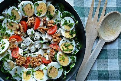 Sałatka ze szpinakiem, jajkami, fetą i sosem ziołowo-czosnkowym