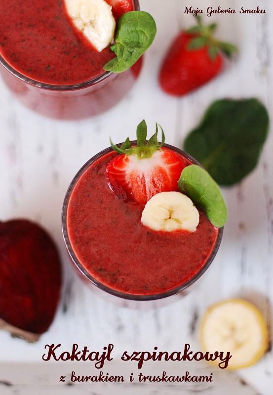 Koktajl szpinakowy z burakiem i truskawkami