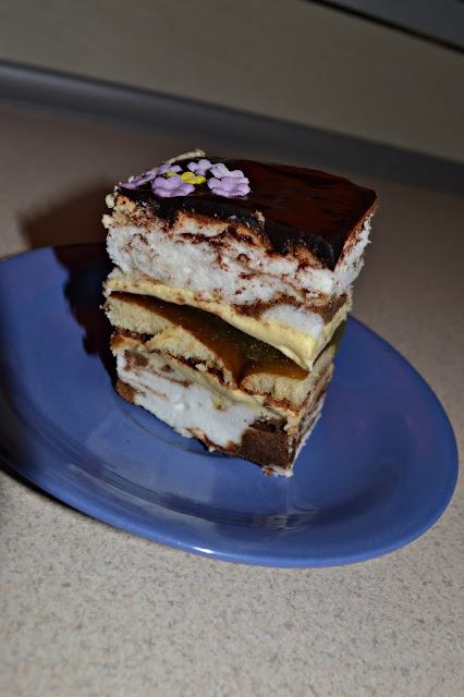 Składniki:Ciasto jasne:7 białek250 g cukru 1 łyżka octu 1/3 szklanki oleju 1…