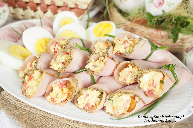 ruloniki z szynki nadziewane pastą jajeczno chrzanową