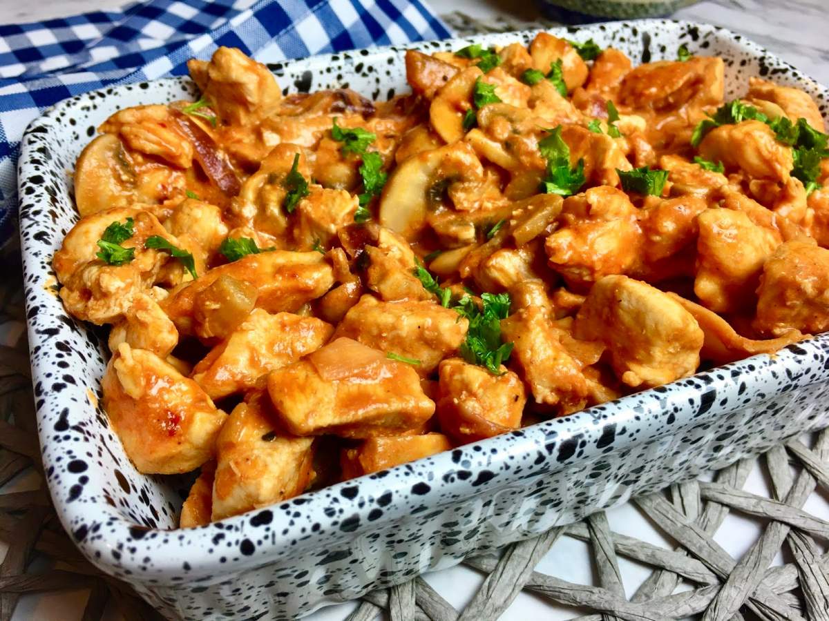 Pierś z kurczaka z pieczarkami w sosie pomidorowym. Bardzo szybki i smaczny…