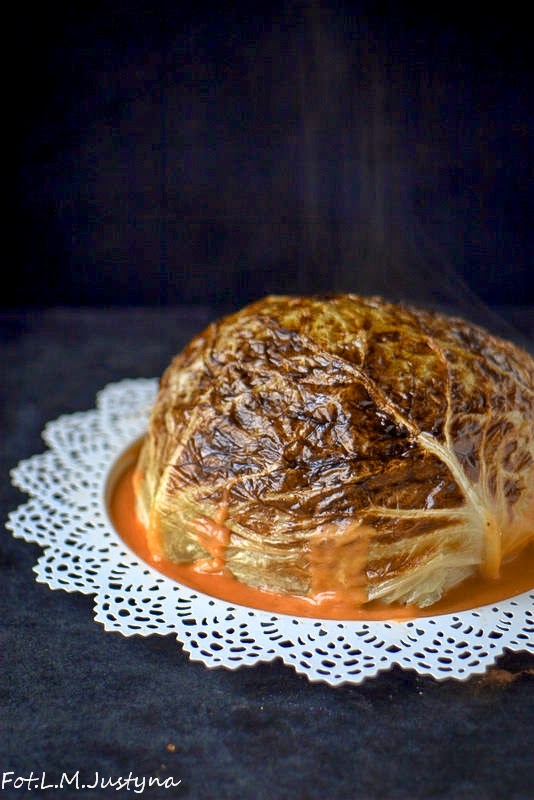 Oto taki eksperyment ułatwione wydanie gołąbków, ale zabawa przy wydrążaniu tez nie zła, oczywiście wnętrze kapusty nie wyrzucamy zużywamy do suróweczki :). Pyszna z sosem pomidorowym.