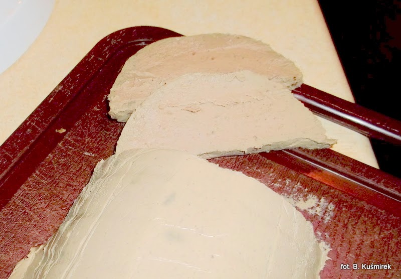 Pasztet jest bardzo delikatny, aczkolwiek z wyczuwalną nutą goryczki. Aby tę goryczkę złagodzić dodałam do pasztetu majonez. Wyszedł bardzo smaczny. A inspiracja był przepis