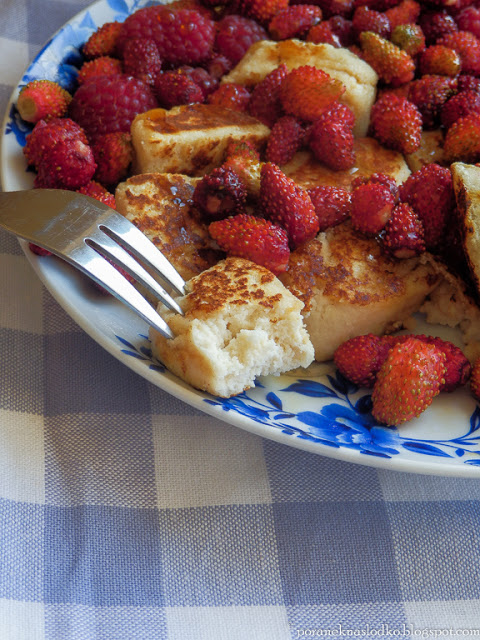 Leniwe z mąki kokosowej podsmażane na oleju kokosowym podane z poziomkami, malinami…