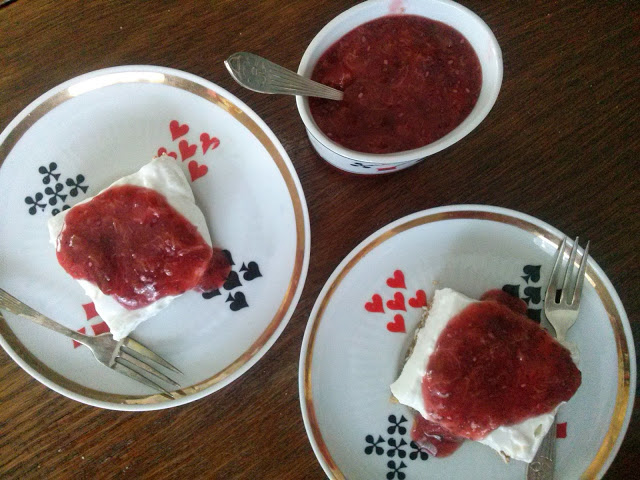 Bardzo prosty i szybki w przygotowaniu serniczek. Podałam go z polewą śliwkową…