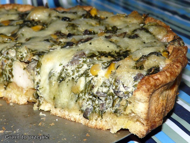 Tarta szpinakowa z kurczakiem i pieczarkami