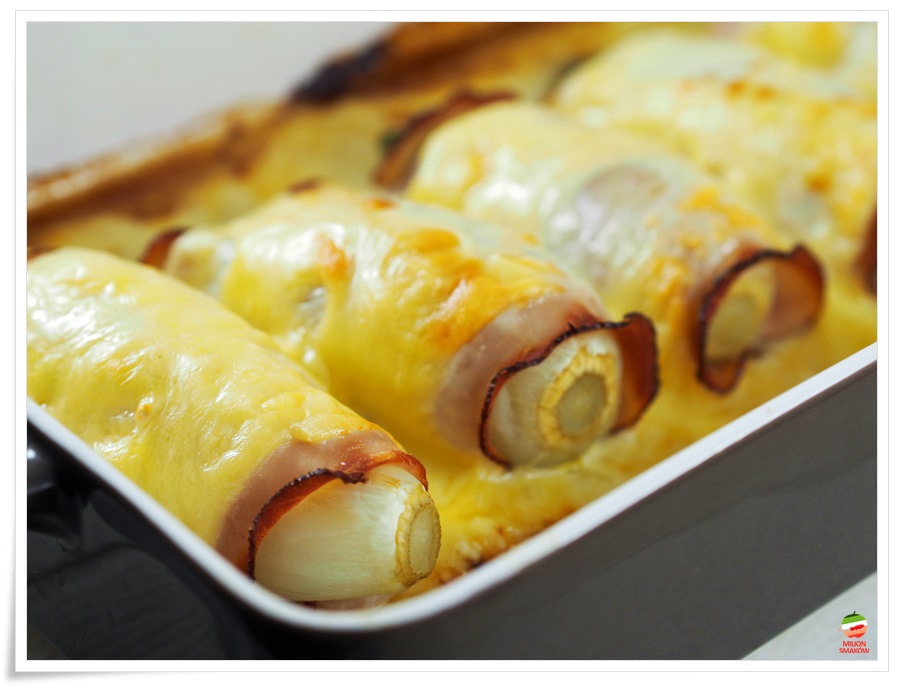 Cykorię do tej pory jadłem tylko w sałatkach a jeśli pojawiała się w daniach obiadowych to w postaci liści i jako dodatek. Tym razem chciałem umieścić cykorię w centrum dania a resztę produktów dobrać do niej jako dodatki.