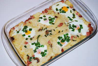 Ziemniaki zapiekane z kiełbaską, szynką i jajkami. Taka szybka obiadowa zapiekanka.Do tego…