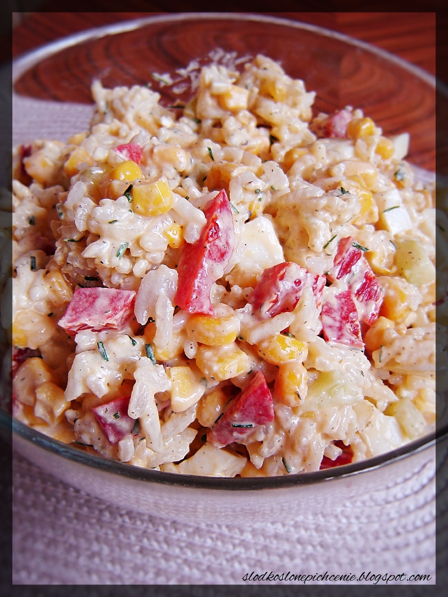 Pyszna, szybka w przygotowania, kolorowa sałatka ryżowa z jajkiem, ogórkiem, papryką i…