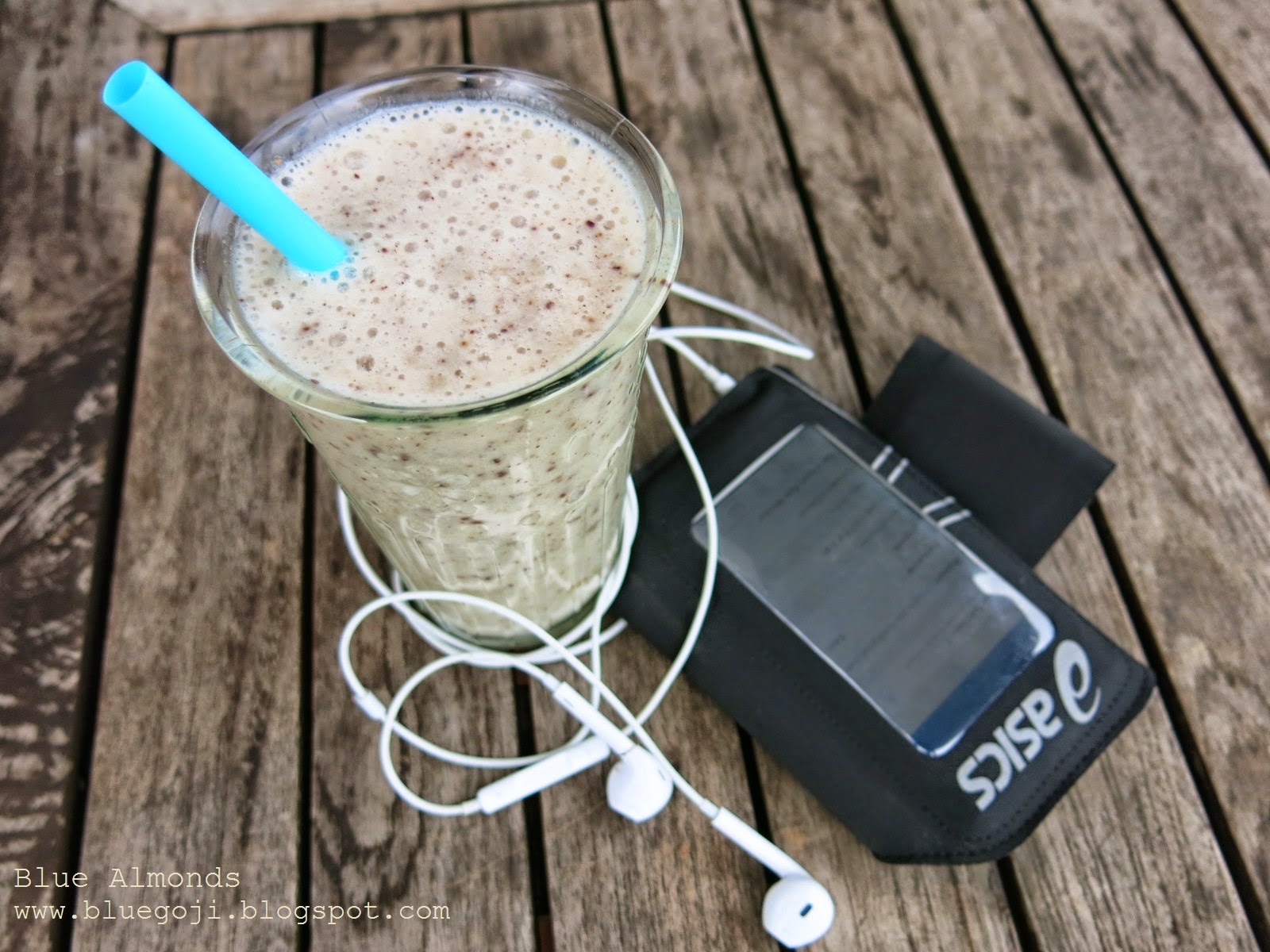 kruszone ziarna kakowca + mleko migdałowe + banan