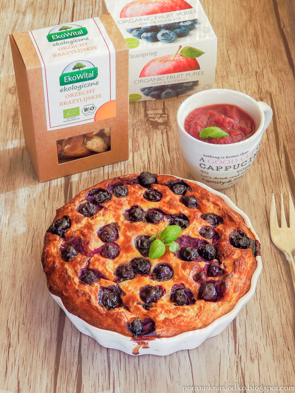 Pieczone sernikowa jaglanka* z ekologicznymi orzechami brazylijskimi** i borówkami podana z ekologicznym musem jabłkowo-borówkowym